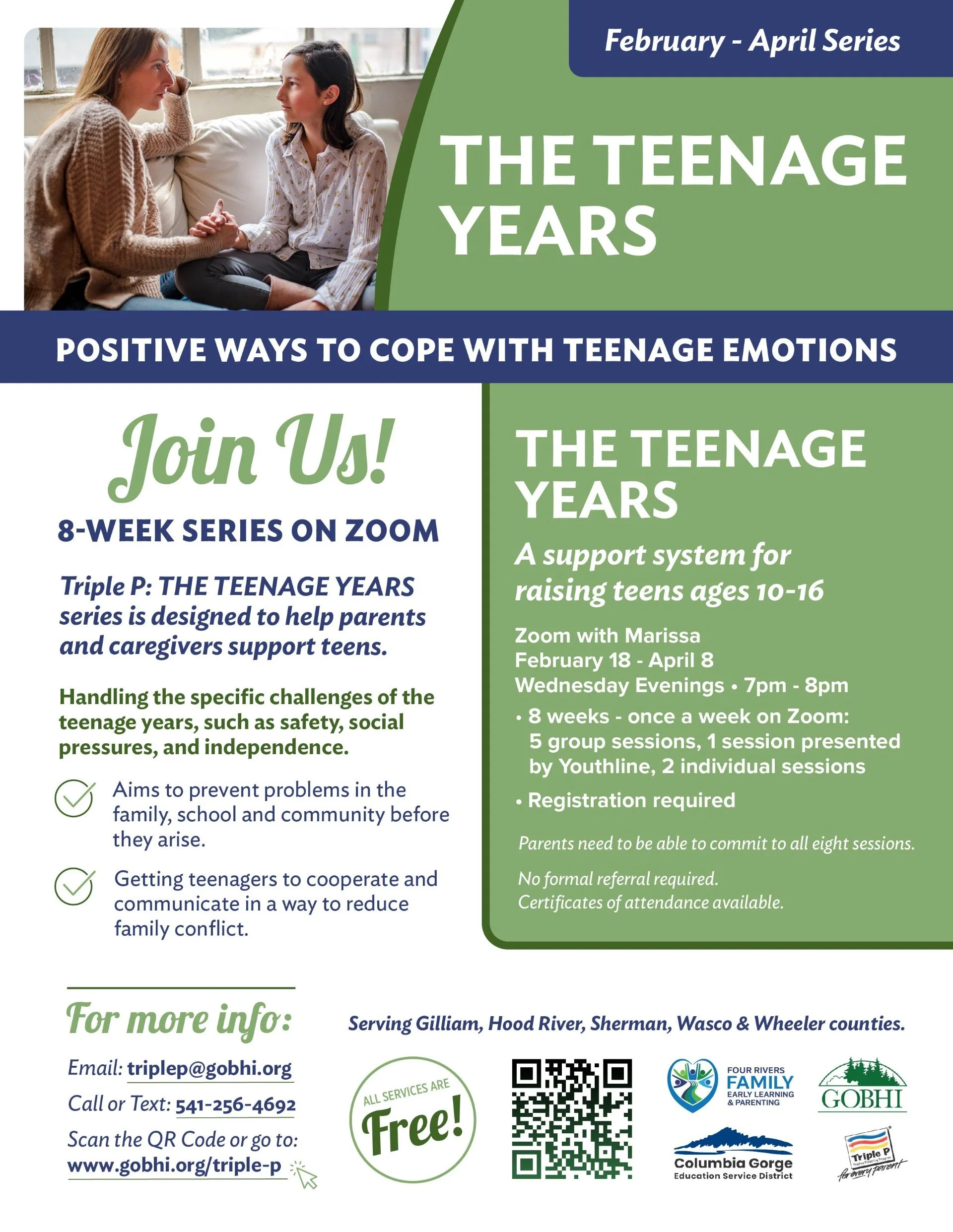 📩 Email, call/text, or scan the QR code to register. You’re raising a teen—and that’s important work. We’re here to support you. 💚