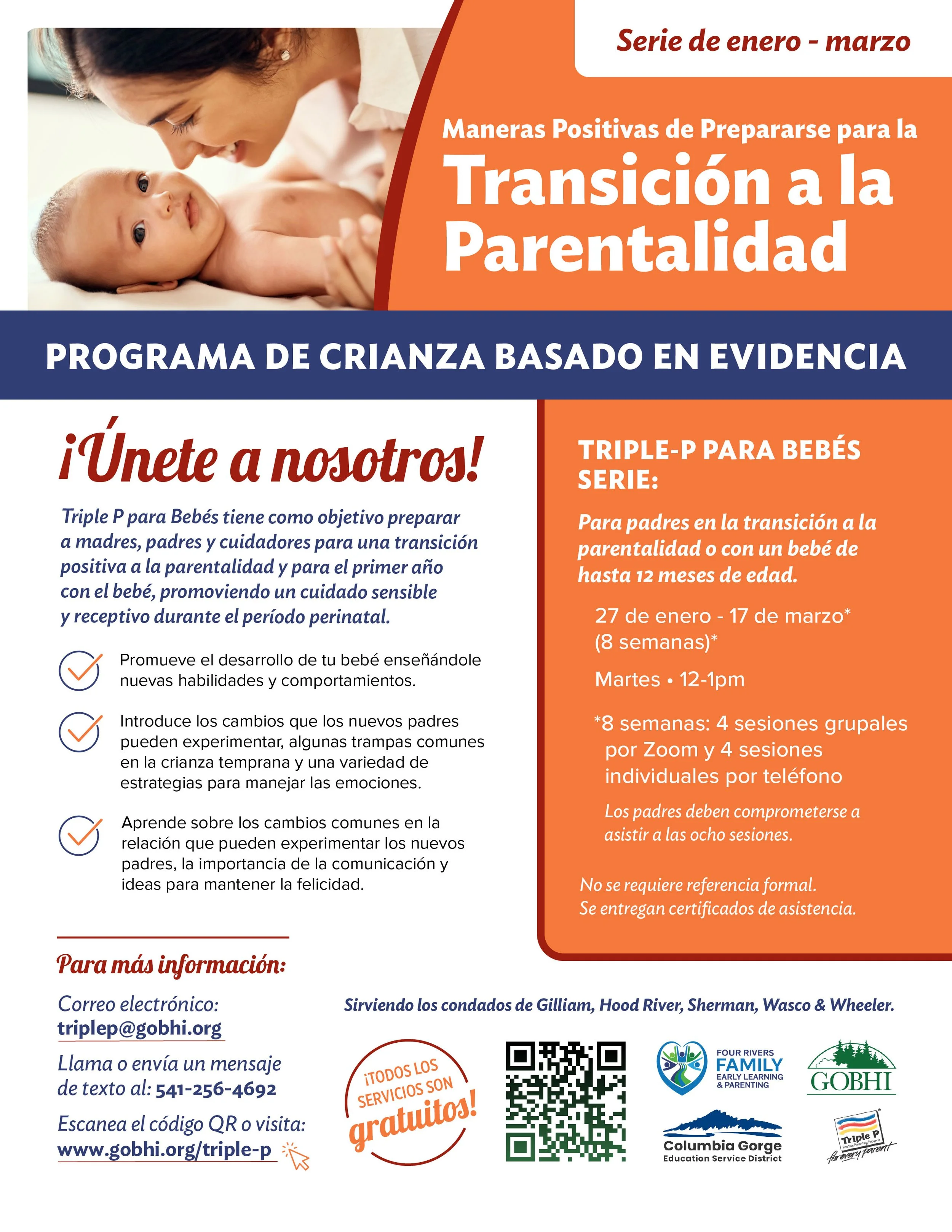Sirviendo a los condados de Gilliam, Hood River, Sherman, Wasco y Wheeler . ParentEd_Flyer_BABY_Eng_FNL_Jan...